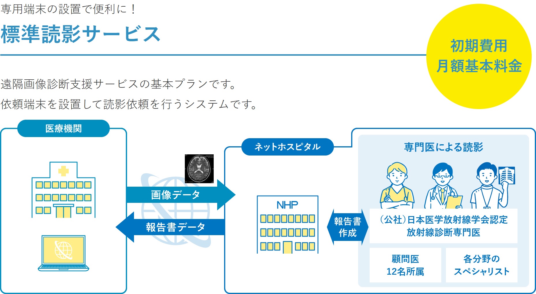 ご依頼方法は、専用端末を設置しご依頼をいただく、標準読影サービスをご用意しております。